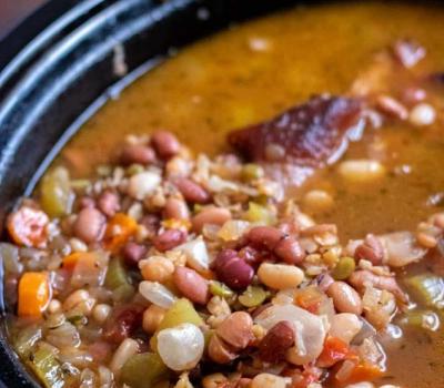 A yummy slow cooked 15 Bean Soup recipe,packed with flavor and goodness - this meal is a great one to set and forget!