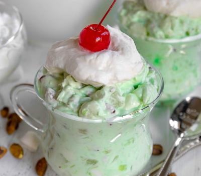 Although salads and cakes made flavored with pistachios date back to the early 20th century, culinary evidence connects the recipes we know today as Watergate Salad and Watergate Cake to the Kraft Company, dating from the mid 1970s. Why the Kraft connection? Both recipes use pistachio instant pudding mix, which was introduced by Kraft Foods in 1975.