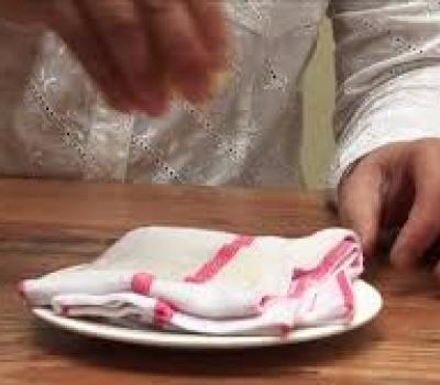 Put the rosemary sprigs into a large microwave safe bowl and fill it about 3/4 full of water. Microwave on high for 3 to 4 minutes, or until the water is very hot.Remove the bowl from the oven and add the washcloths. Let them soak for a few minutes. Carefully (they will be hot!) remove them from the water and wring them out. Fold the washcloths in half, place 1 rosemary sprig on each cloth, and roll them up like a cigar.