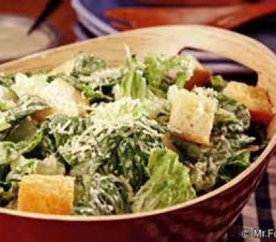 Whisk minced anchovies, garlic, mustard, vinegar and hot pepper sauce in large bowl. Gradually add ¼ C olive oil and whisk until thick.Season dressing to taste with salt and pepper. Add lettuce and toss.