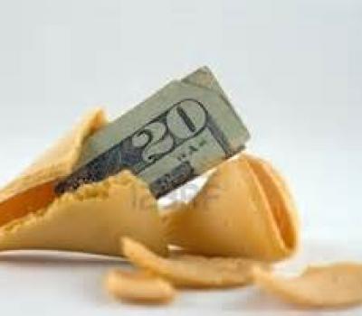 Remove from oven and quickly move cookie with a wide spatula and place upside down on a wooden board. Quickly place the fortune on the cookie, close to the middle and fold the cookie in half. Place the folded edge across the rim of a measuring cup and pull the pointed edges down, one on the inside of the cup and one on the outside. Place folded cookies into the cups of a muffin tin or egg carton to hold their shape until firm.
