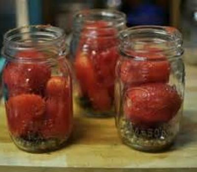 is heating. If you pack one jar of tomatoes at a time, the jar