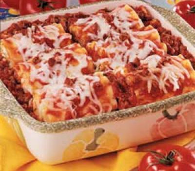 5. Place a lasagna noodle on a work surface. Spoon one layer of ricotta cheese mixture, one layer meat sauce, and one layer mozzarella cheese atop the lasagna noodle; top with another lasagna noodle. Roll up the stuffed lasagna noodles in the jelly-roll style; place in the prepared casserole dish. Repeat with remaining lasagna noodles, ricotta cheese mixture, meat sauce, and mozzarella cheese. Spread a spoonful of meat sauce atop each lasagna roll; top with remaining mozzarella cheese and 1/4 cup Parmesan cheese.