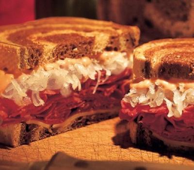 Spread the prepared Russian Dressing on one side of each bread slice, then layer corned beef, Swiss cheese, and sauerkraut on 3 slices of the prepared Bread. Place the remaining prepared bread slices over the top of each sandwich.