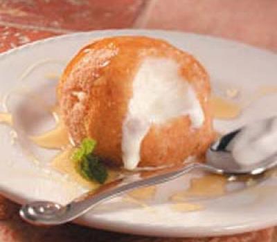 In an electric skillet or deep-fat fryer, heat oil to 375°. Fry ice cream balls for 8-10 seconds or until golden. Drain on paper towels. Immediately place in chilled bowls; drizzle with honey and serve. Yield: 8 servings.
