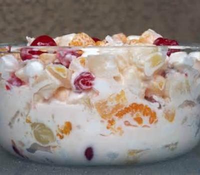 1 day - instead of overnight can make this in early a.m. Mix in Cool Whip and fruit by 5 or 6 o'clock p.m. Ready for evening dessert. Serves 15.