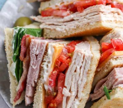 Layers of bacon, turkey and ham with juicy tomatoes and crisp lettuce make up this classic sandwich!