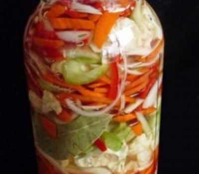6. Place the jar in a closed cupboard. Let the giardiniera ferment at room temperature