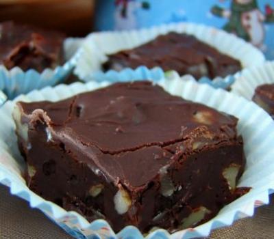 *it is very important not to use a wire whisk or the fudge will not set up. Also just stir gently, even though the cocoa will stay floating on top, it will mix in as the mixture heats up.