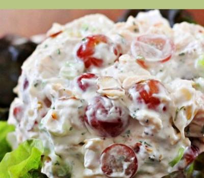 This tasty Neiman Marcus Chicken Salad has a secret ingredient that gives the texture of the salad a wonderfully creamy texture. What is it ? Freshly whipped cream folded into the chicken, almond and grape salad. It works and it is wonderful.