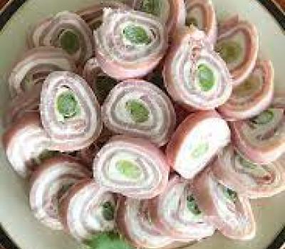 Cheddar cheese is blended with the usual cream cheese for these attractive little ham spirals, giving them an extra splash of flavor and color. You'll get plenty of requests for the recipe.