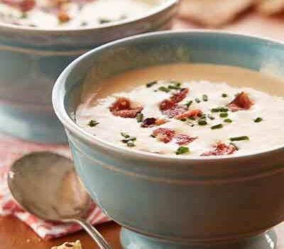 Serve warm topped with crumbled bacon and chopped chives, if desired.