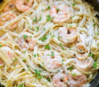 Stir in the drained pasta and cooked shrimp, tossing until noodles are well coated in sauce. Serve in warm pasta bowls with a generous sprinkle of finely chopped parsley, more parmesan cheese and some freshly cracked black pepper.