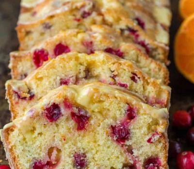 Orange Glazed Cranberry bread is loaded with juicy cranberries with a moist and tender crumb. This stays moist for a few days after it’s made so it’s perfect as a homemade Christmas gift.