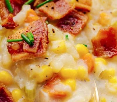 CROCKPOT CORN CHOWDER WITH POTATOES AND BACON
