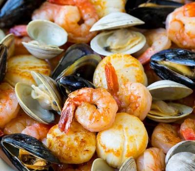 Remove the scallops from the pan. Season the shrimp with salt and pepper and add them to the pan. Cook for 3-4 minutes or until pink and opaque.