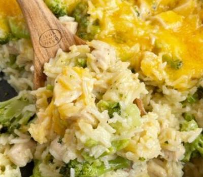Cheesy Chicken Broccoli Rice is an easy dinner recipe that is made in one pot on the stove. With only 6 simple ingredients like chicken, broccoli, rice, chicken broth, and cheddar cheese it can be on the table in just 30 minutes.