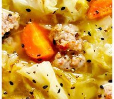 Add ground pork to a large stockpot and cook over medium-heat for 5-6 minutes, stirring and flipping occasionally, until the pork is lightly browned. Use a slotted spoon to transfer the pork to a separate plate, and set aside.Add the olive oil and onion, and stir to combine. Sauté for 5 minutes, stirring occasionally. Add the carrots and garlic, and sauté for 2 more minutes, stirring occasionally. Add the cabbage, stock, ginger, and cooked pork, and stir to combine.