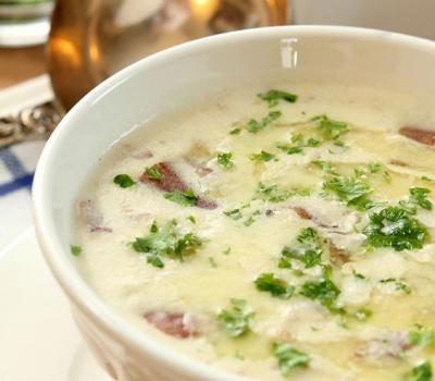 Bacon, Potato and Leek Soup with Roasted Garlic