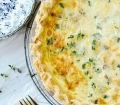 Quiche Lorraine is a classic quiche filled with Swiss cheese, ham, and bacon.