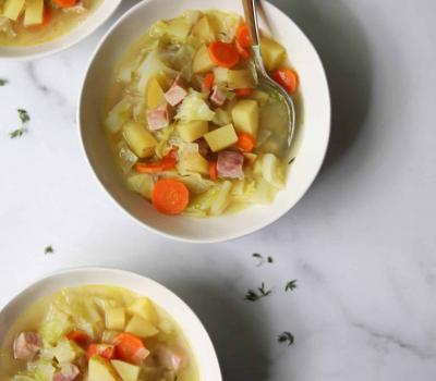 Delicious old-fashioned chunky ham and cabbage soup with potatoes that's comforting and flavorful.