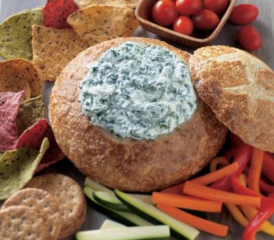 Stir together the dip mix, sour cream, spinach and water chestnuts.Chill for 30 minutes or until just before serving. Serve with your favorite dippers. *Try serving the dip in a bread bowl.
