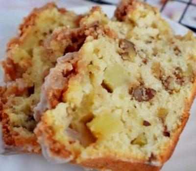 Delicious apple bread recipe is a quick, yeast-free dessert bread recipe. This bread turns out fluffy, moist, and sooo fragrant! It is filled with apple and nut pieces, with a cinnamon-sugar crust and glazes on top.