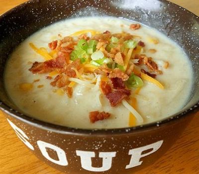 Optional garnishes: chopped chives, bacon bits, sour cream, shredded cheddar and Monterey Jack cheese