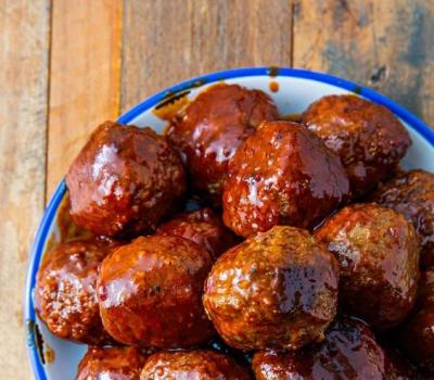 Step 1Place meatballs in bowl of a slow cooker and pour bbq sauce, grape jelly, and sriracha over. Stir to coat meatballs.