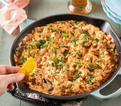 This dip is also delicious rolled up in a warm tortilla for a quick weeknight dinner or game day taco!