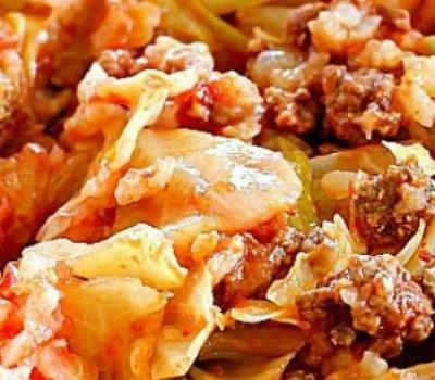 This yummy casserole is slowly baked and full of ground beef, rice and cabbage in a light tomato sauce. Hearty, simple to make and delicious!