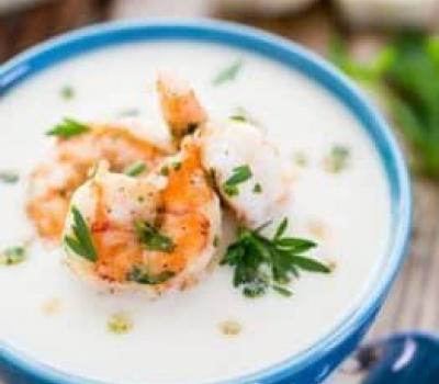 To Serve - pour in desired amount of creamy soup in the bowl. Top with 5-6 buttery shrimp on top and enjoy :)