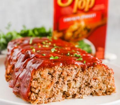This recipe uses a boxed stuffing mix as a shortcut to add flavor and texture to the meatloaf. The stuffing mix is combined with ground beef, eggs, and milk to create the perfectly flavored moist meatloaf!