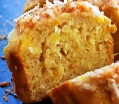 This quick bread recipe is made with sweet crushed pineapple and toasted coconut, making it taste like a Pina Colada cocktail.