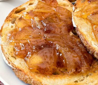 Ladle hot apple mixture into 6 or 7 sterilized half-pint canning jars, leaving a ¼-inch headspace. Remove air bubbles, adding more of the jam mixture if necessary. Wipe rims of the jar with a clean paper towel. Center canning lids on each jar and screw on band until fingertip tight.