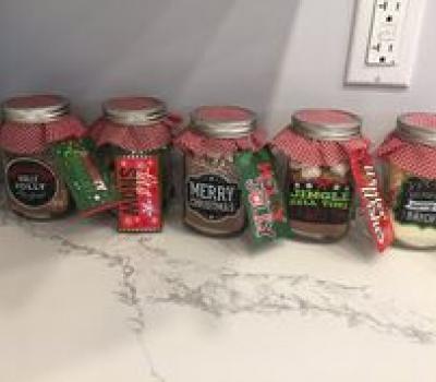 Peppermint Hot Chocolate 1/4 instant dry milk 1/2 cup cocoa powder 1/4 cup sugar 1/2 cup of semi sweet chocolate chip 1/2 cup crushed candy cane Top with MarshmallowsPeanut Butter Hot Chocolate 1/4 cup of instant dry milk 1/2 cup of cocoa powder 1/4 cup of sugar 1/2 cup peanut butter chips 1/4 cup semi sweet chocolate chips Top with Marshmallows