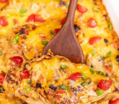 Remove the foil from the pan and sprinkle shredded cheese over the top of the casserole. Bake uncovered for 15 to 20 minutes, until the rice is bubbly and the chicken reaches an internal temperature of 165ºF.