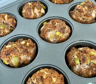 Mix everything together in a bowl. I find using my hands works best. This is a great step to have the kids help out with.Grease muffin cups.