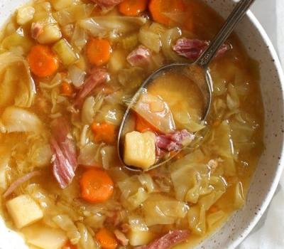 Leftover Ham Bone Soup with Potatoes and Cabbage