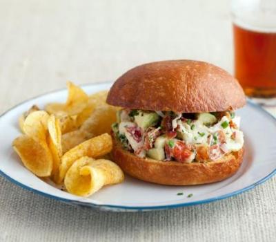 Toast the brioche rolls in the oven until slightly colored, about 4 minutes. Assemble the sandwich by putting a liberal amount of lobster salad on each roll and serve.