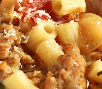 Stir in the tomatoes, beans, sausage and remaining stock. Add the pasta and bring the soup to a boil. Cook for 6-7 minute or until the pasta is al dente.