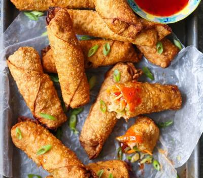 Working in batches, add egg rolls to the Dutch oven and fry until evenly golden brown and crispy, about 2-3 minutes. Transfer to a paper towel-lined plate.