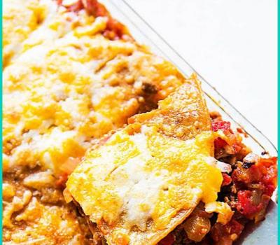 (If you don't have time to pre-soften the tortillas, coat the bottom of the pan with some olive oil and spread a little sauce over the bottom before adding the tortillas.)