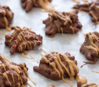 These delicious Chubby Hubby Clusters are the perfect combo of peanut butter, chocolate and pretzels. No baking needed for these clusters.