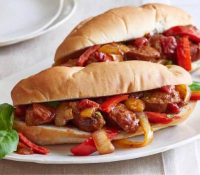 Serve in bowls. Or, if serving as a sandwich, split the rolls in half lengthwise. Hollow out the bread from the bottom side of each roll, being careful not to puncture the crust. Fill the bottom half of the roll with sausage mixture. Top and serve sandwiches immediately.