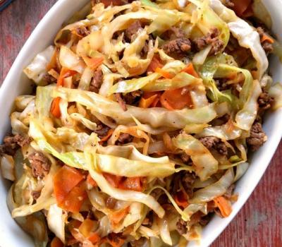 1 lbs. of ground beef, pork, or chicken (I use beef)1 head of cabbage (on the smaller side)
