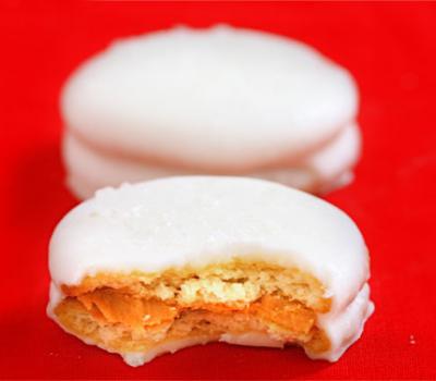 Ritz crackers (or other favorite buttery crackers)vanilla almond bark or white-chocolate chips (1 lb will make approximately 25 - 30 cookies)