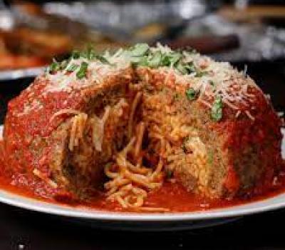 We made an enormous amount of spaghetti the night before Bob's half marathon. He ate all he could and we had a lot left. This is a fun twist on using leftover spaghetti. When making the meatball, use the spices that you like. I used Italian seasoning plus more parsley, basil, oregano, thyme, seasoned salt, and pepper. The video is helpful to create your giant meatball: https://www.youtube.com/watch?v=NEZid-EZ8vw