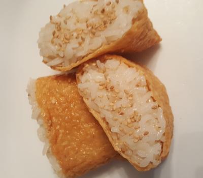 Sweet little pockets of fried tofu, filled with seasoned rice.